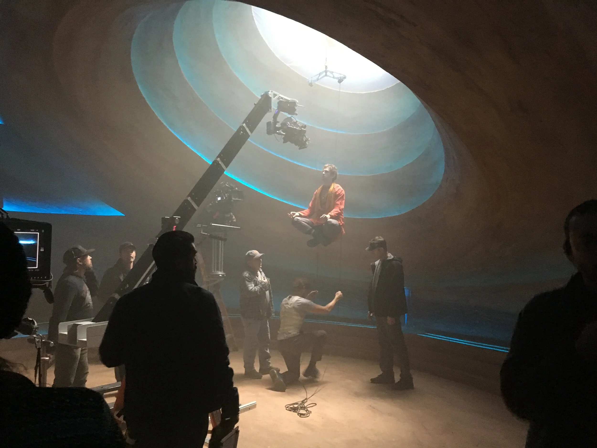 A place for him to meditate, to collect thoughts and foresights. The structure is a dome-like sculptural shape with a repetition of banded light. This dome sits above David’s head when he is meditating like a crown collecting his thoughts, both good and bad, turning them into a vapor. That vapor then condenses into a liquid that trickles down the cave walls and into a tributary that flows throughout the Enlightenment House.